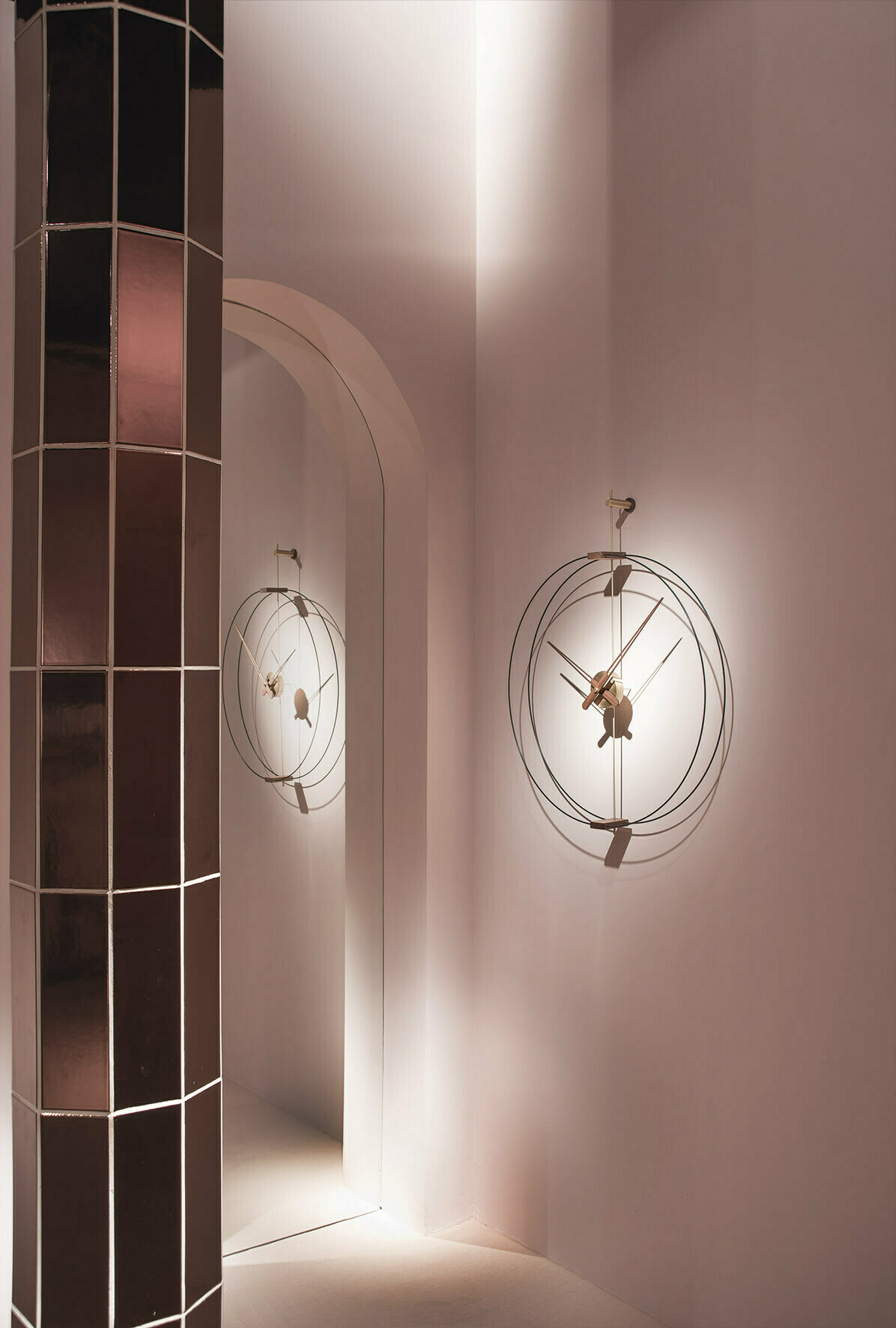 Το Mini Barcelona είναι ένα ρολόι τοίχου με μοντέρνο και μινιμαλιστικό σχεδιασμό. Κατασκευασμένο με δύο δαχτυλίδια από υαλοβάμβακα και λεπτομέρειες από καρυδιά, αυτό το ρολόι είναι μια μειωμένη έκδοση του μοντέλου της Βαρκελώνης. Ένα μίνιμαλ ρολόι, αλλά θα βελτιώσει και θα ομορφύνει το περιβάλλον σας δείχνοντάς σας πάντα τη σωστή ώρα χάρη στο γερμανικό κίνημα UTS που δεν θα χάσει ούτε δευτερόλεπτο σε αυτό το μοναδικό ρολόι.