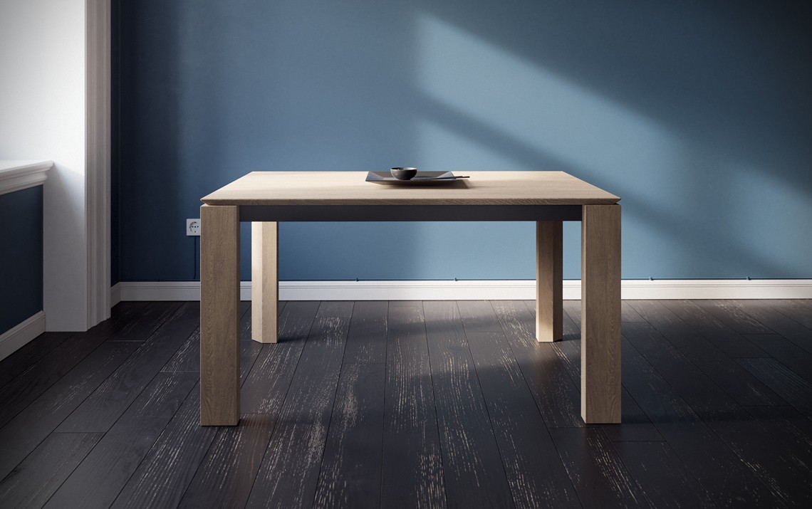 Τραπέζι με ξύλινα πόδια και μεταλλικές τραβέρσες. Διατίθεται με διάφορες επιφάνειες καθώς και με επέκταση.