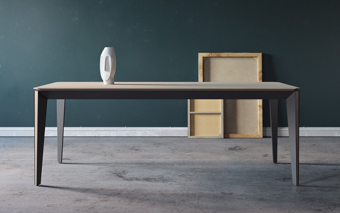 Τραπέζι με μεταλλικό σκελετό και ξύλινες λεπτομέρειες. Διατίθεται με διάφορες επιφάνειες καθώς και με επέκταση.